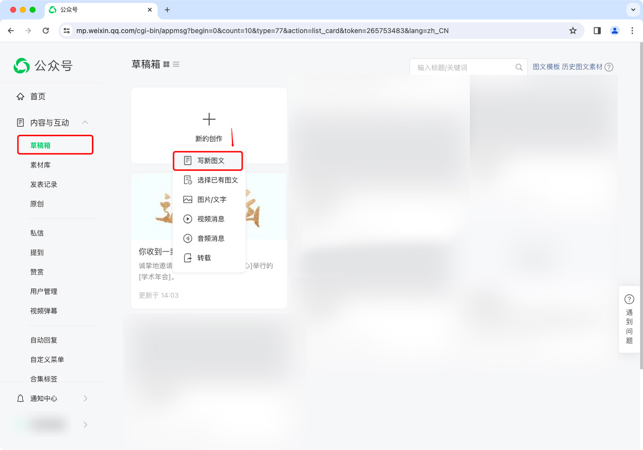 3、输入文章标题、内容,点击上方 小程序,插入作品小程序