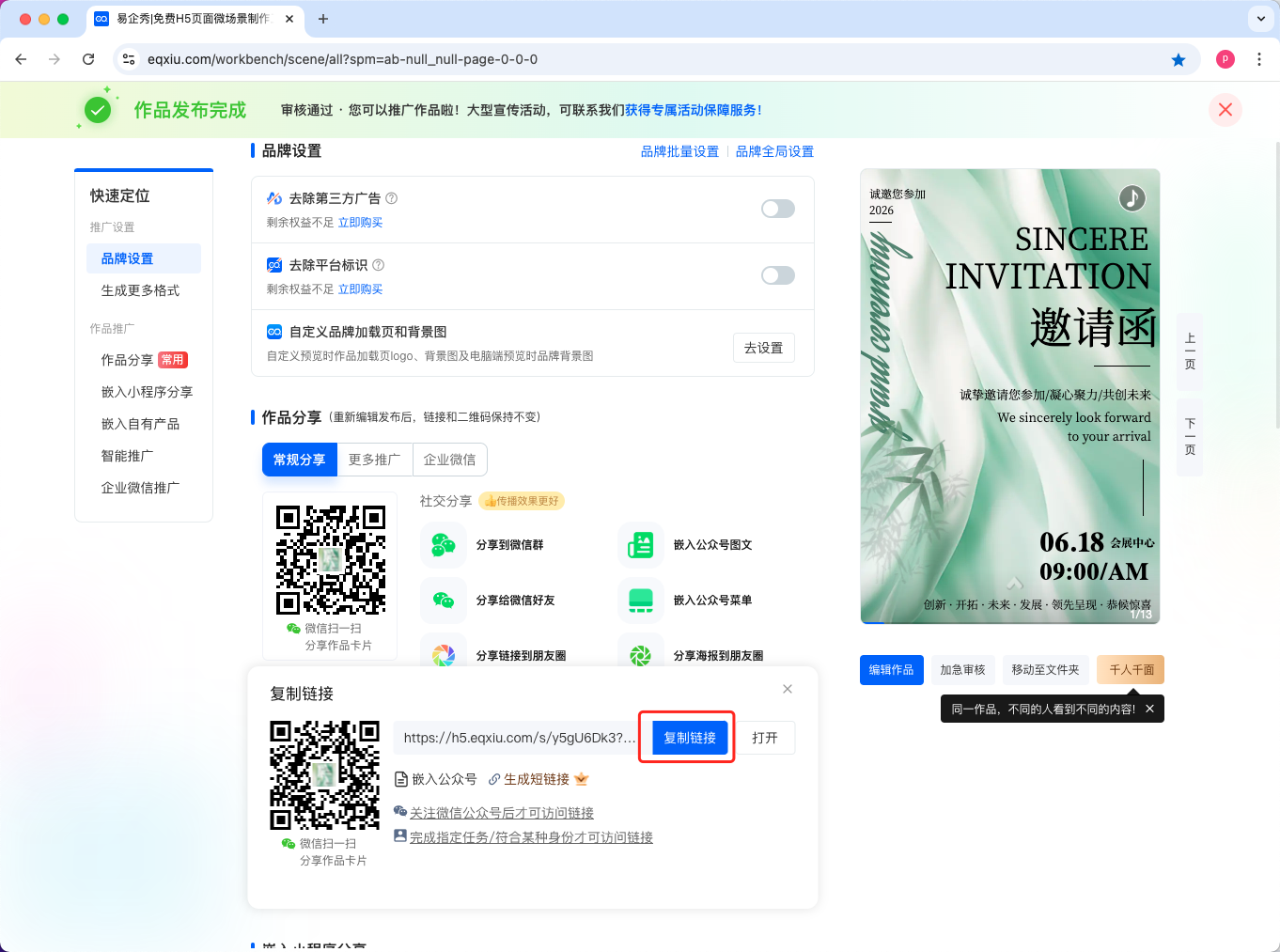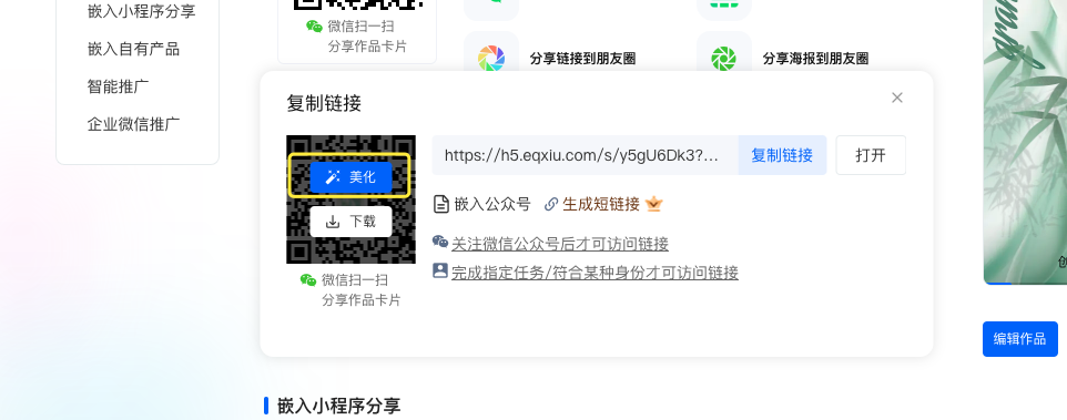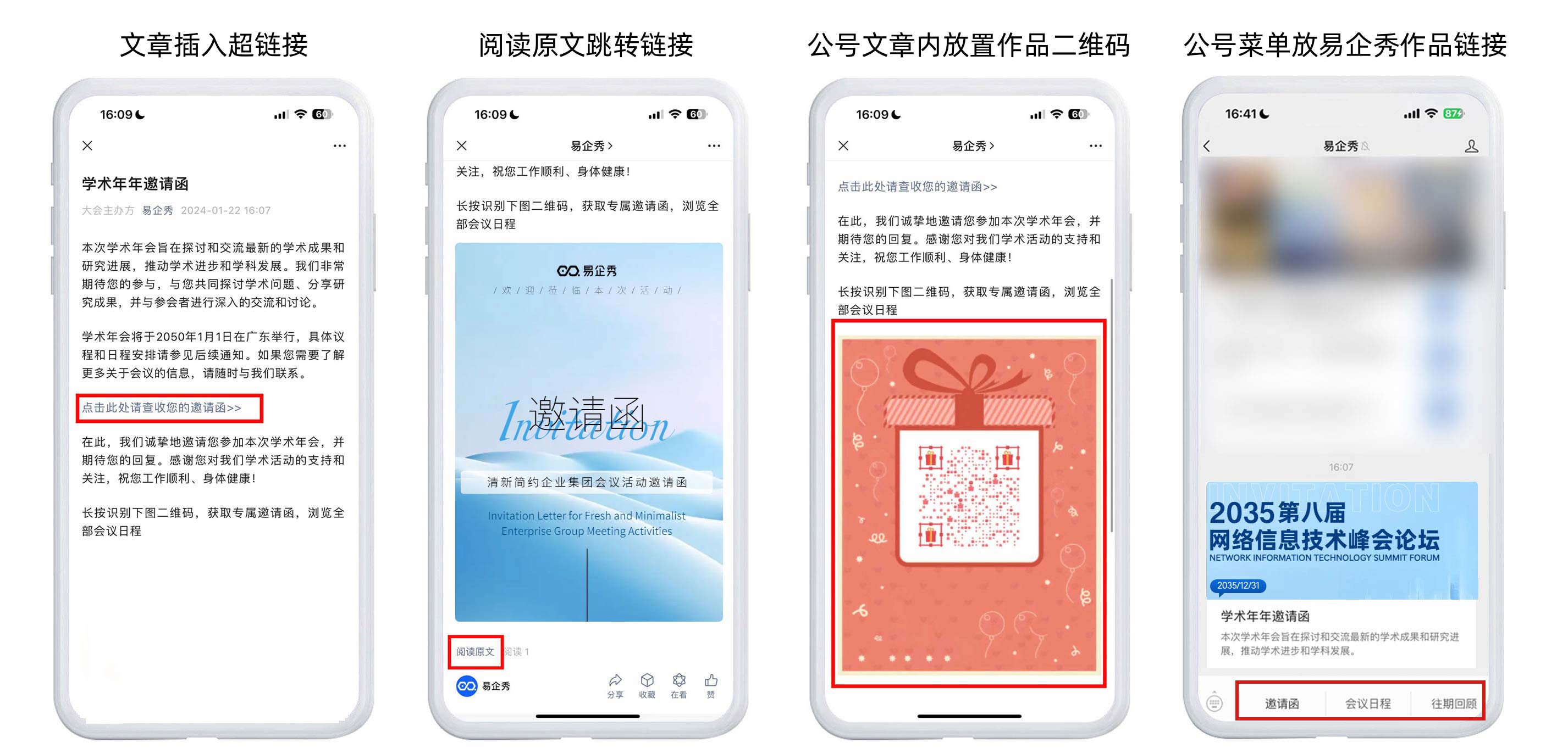 所有公号类型均可通过设置 [ 原文链接 ] 跳转到易企秀作品