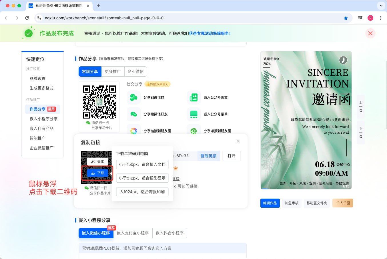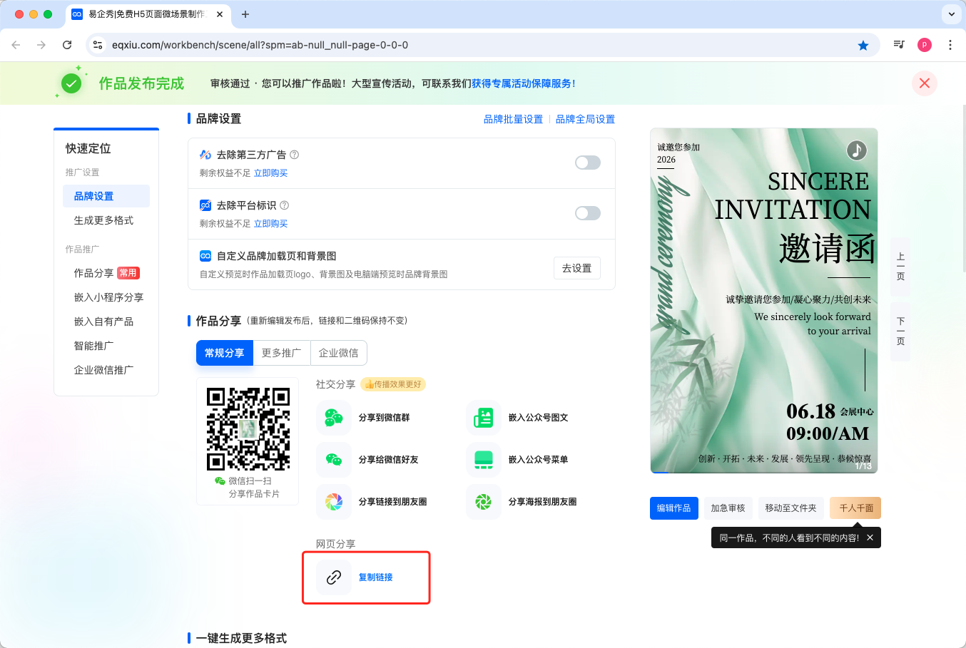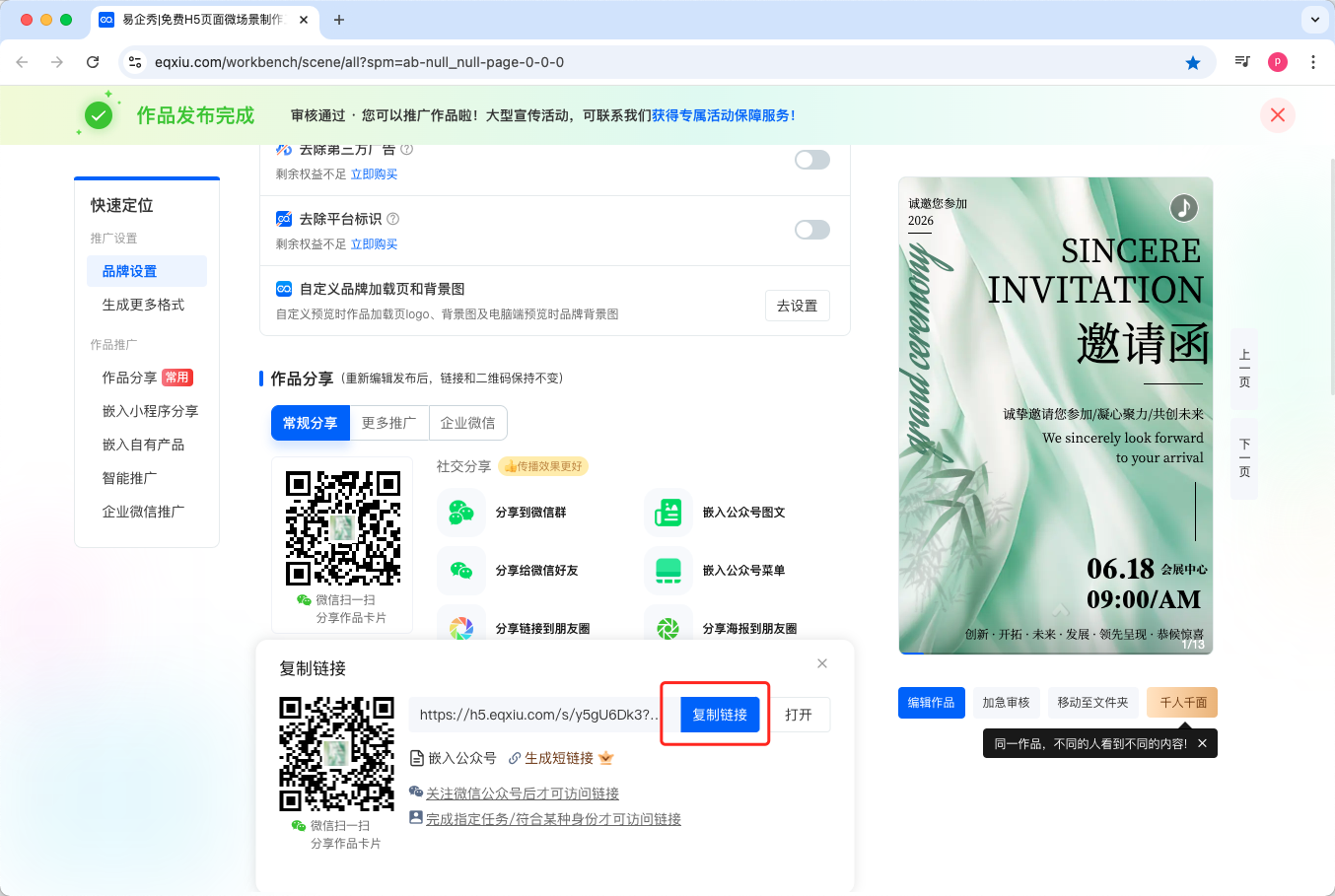 所有公号类型均可通过设置 [ 原文链接 ] 跳转到易企秀作品