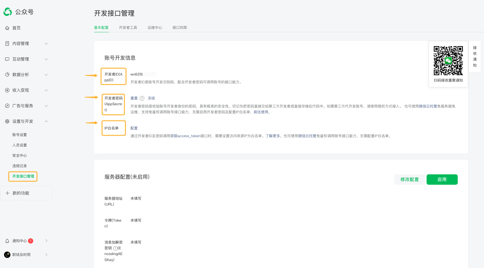 菜单路径:开发接口管理-基本配置-账号开发信息