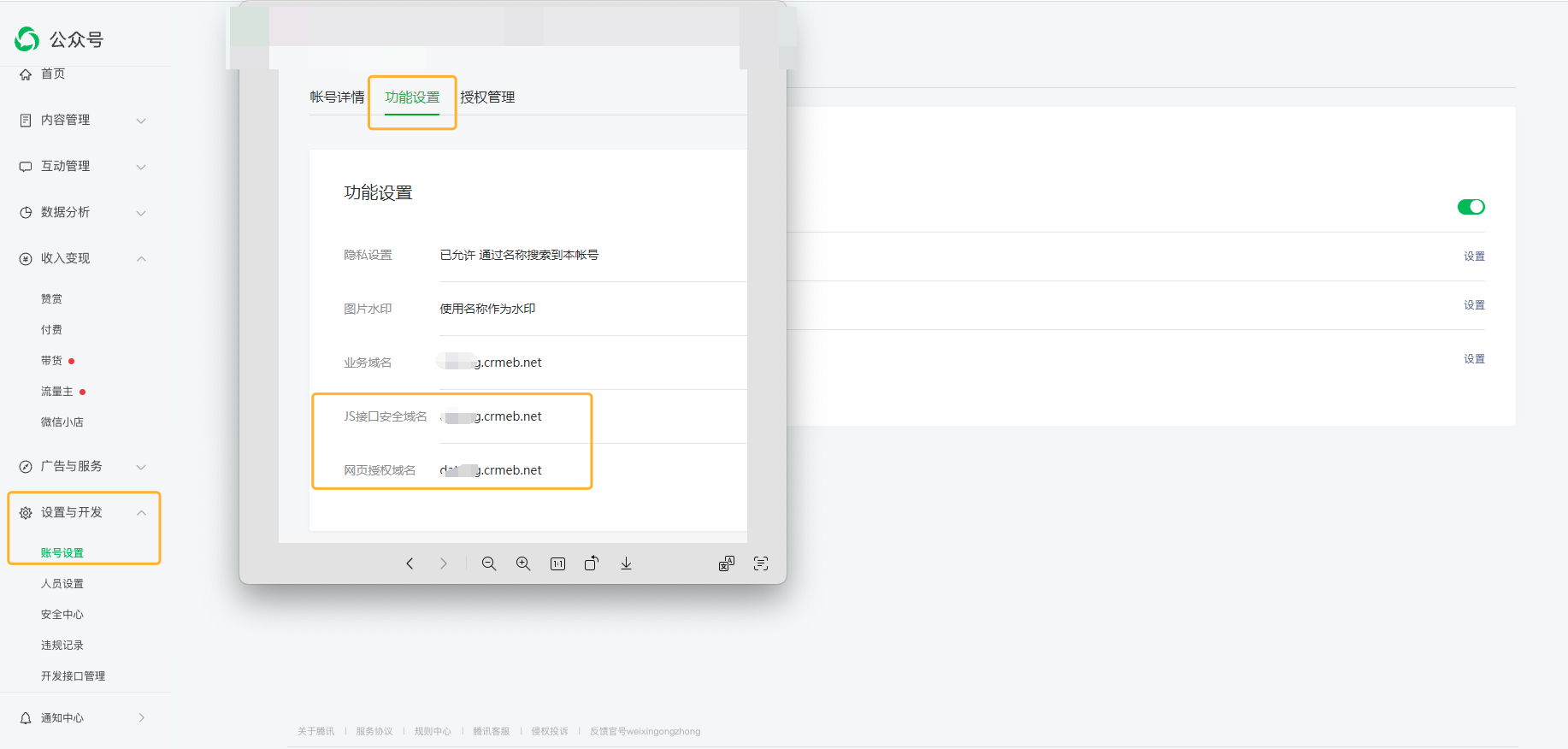 五、域名授权(进入公众号后台)