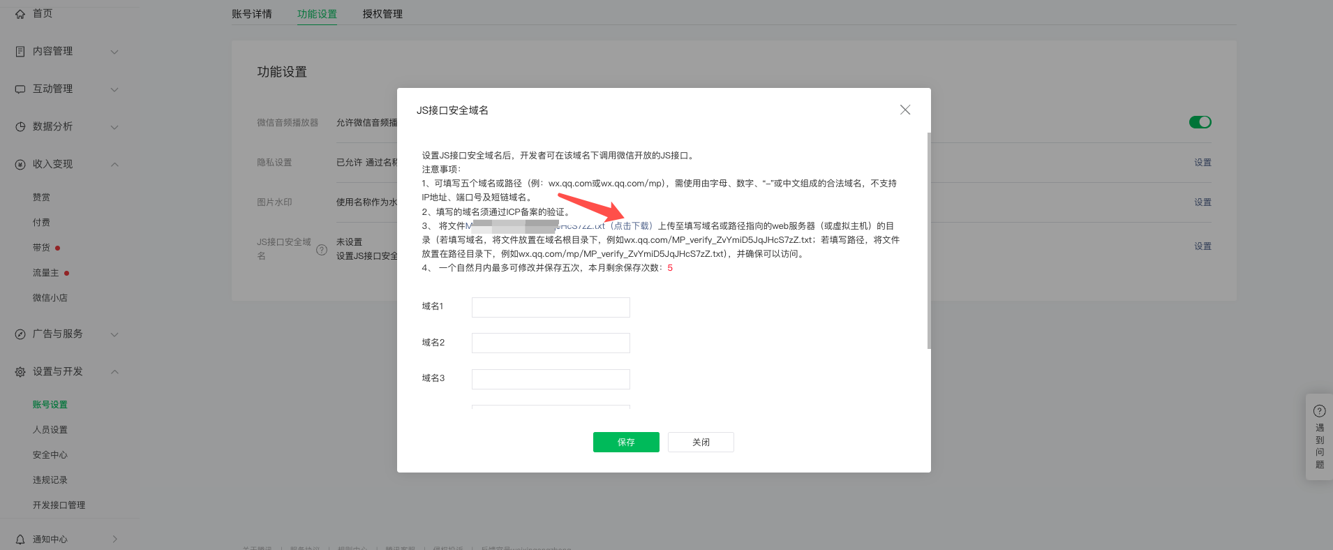 js接口安全域名校验文件:下载提供给到易企秀后,易企秀端进行配置后,可添加域名,域名取作品链接中的部分,