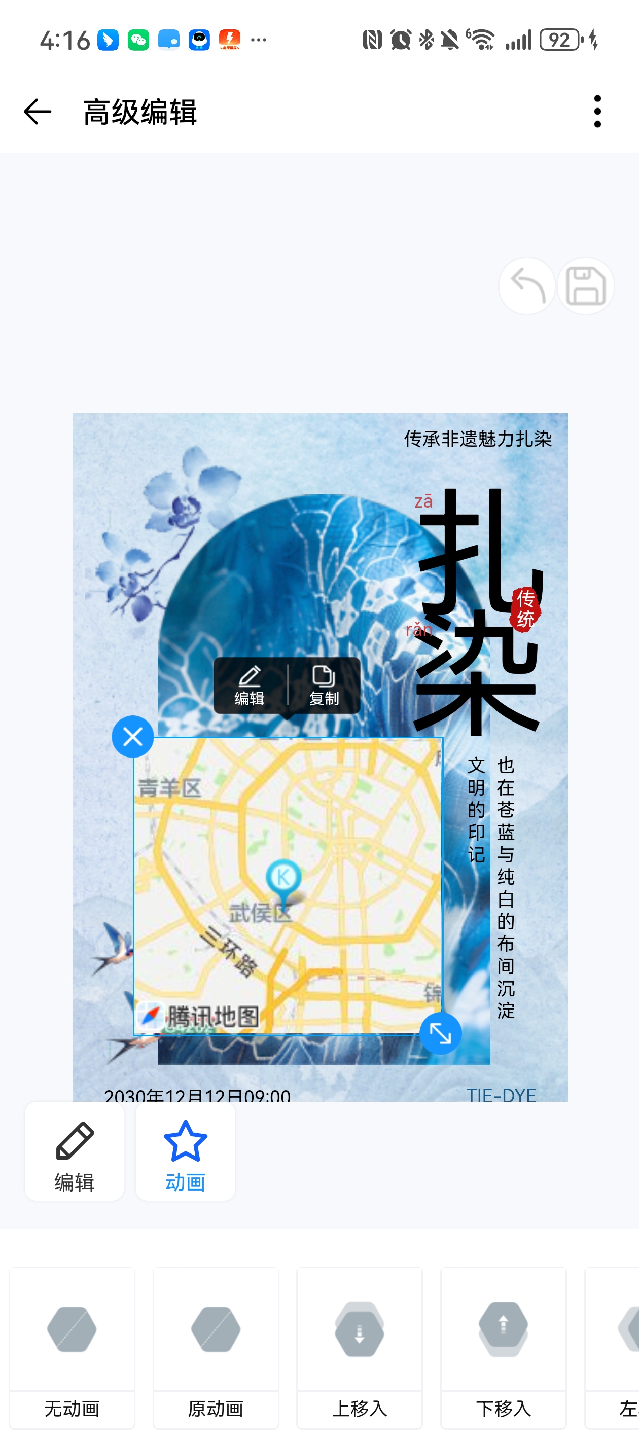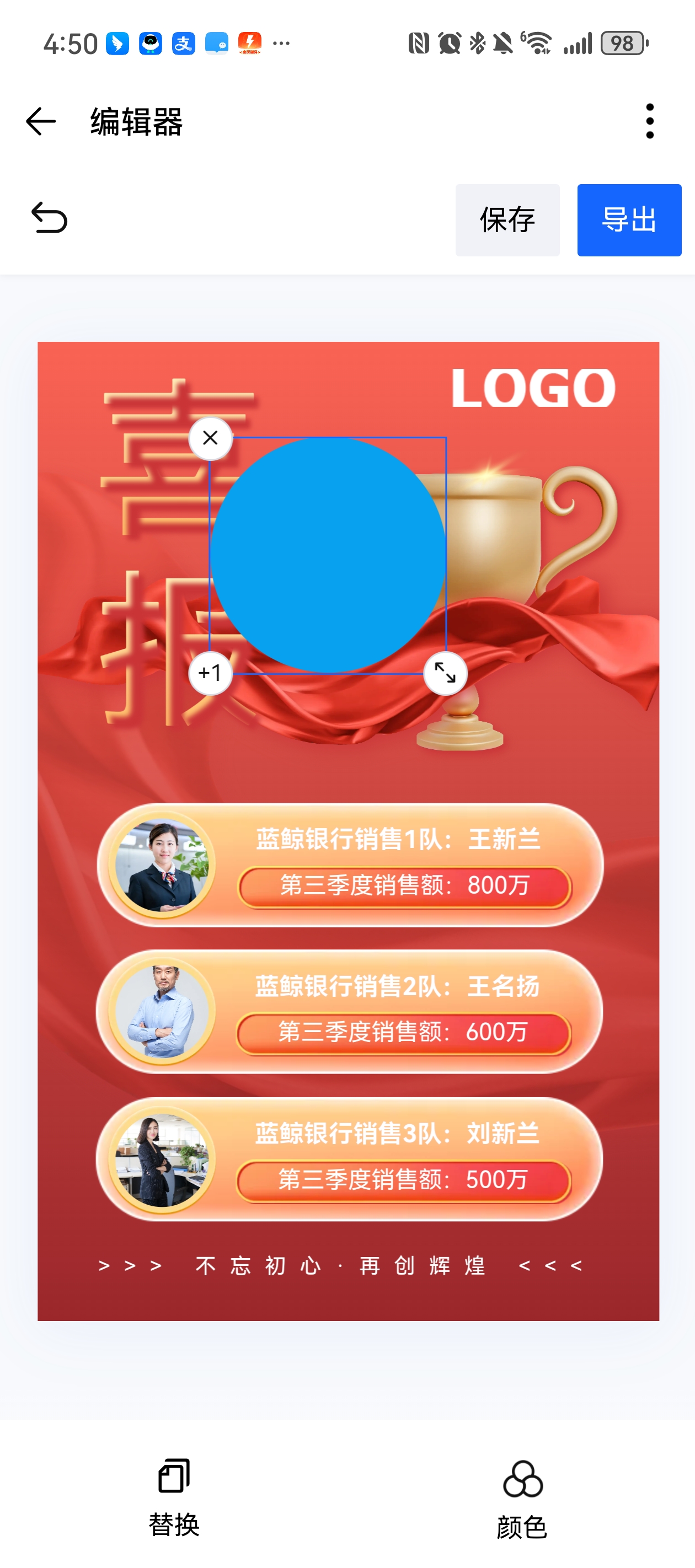 2.5、海报编辑器支持换文字、换图片,是指当前画布中所有的文字和图片会被显示出来,支持直接更换,如下图