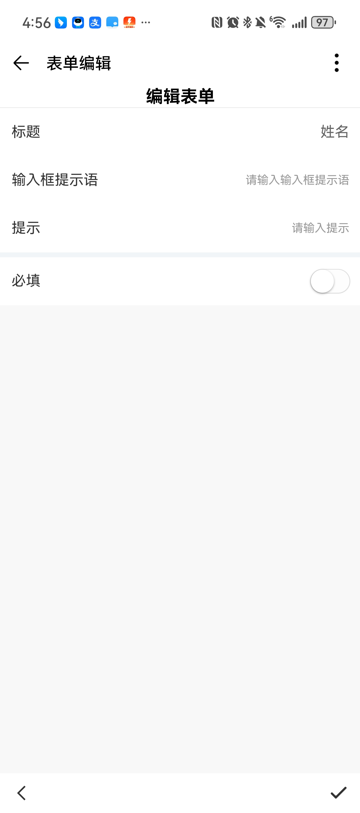 点击添加输入框,出现编辑输入框,支持校验姓名、电话、邮箱、日期和文本,支持修改输入框显示内容,文字颜色、背景颜色、边框设置、透明度和是否必填;