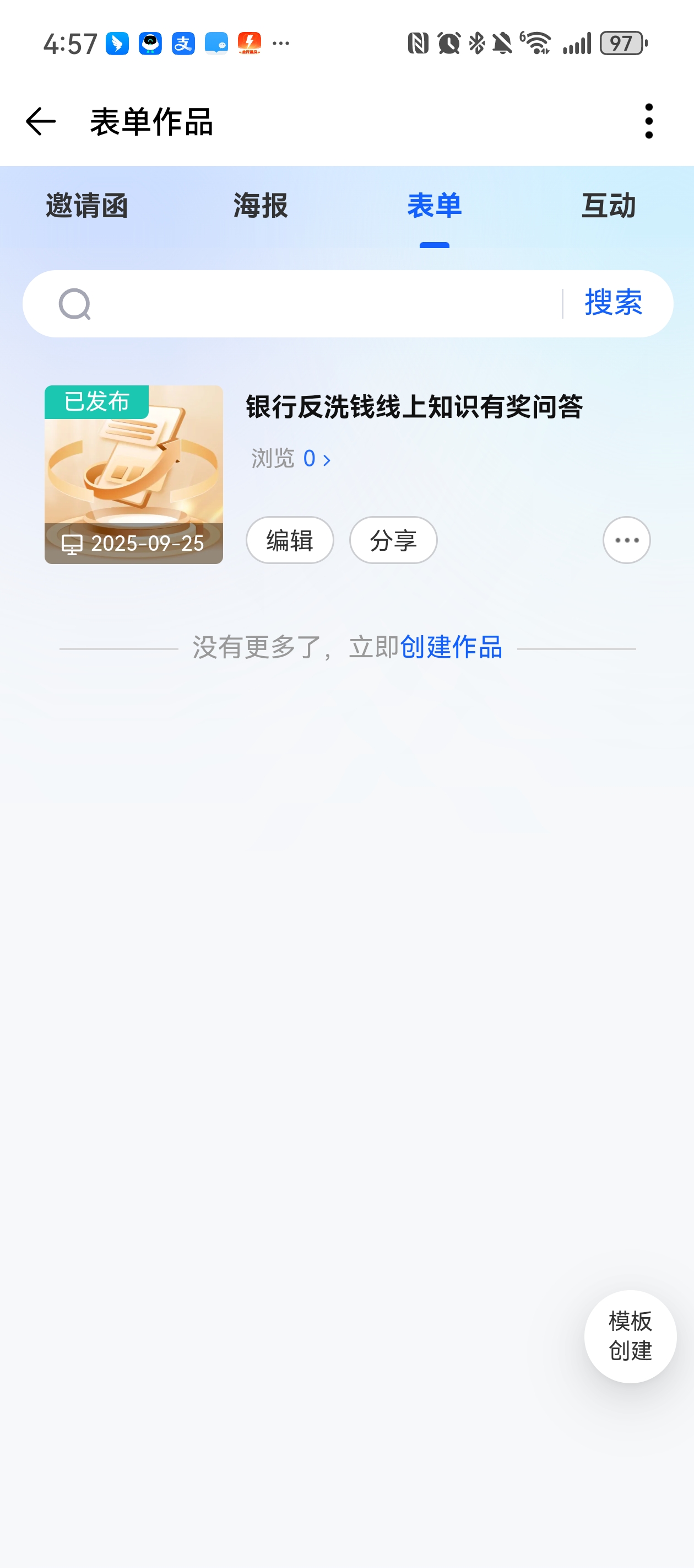 2、会发布到我的作品列表中,支持点击编辑,进入编辑器中修改作品,支持点击分享,分享至微信好友,复制链接分享和保存二维码分享
