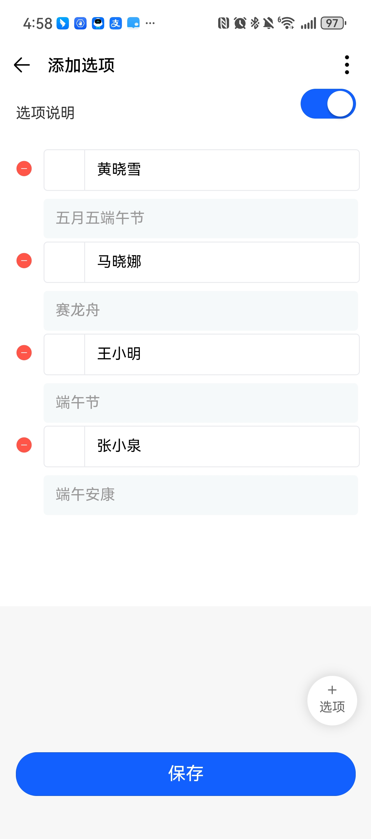点击添加单选,出现编辑单选,支持修改名称,切换选择是单选还是多选,支持修改主体颜色、标题颜色、边框设置和透明度,支持编辑选项,调整选项的排序;