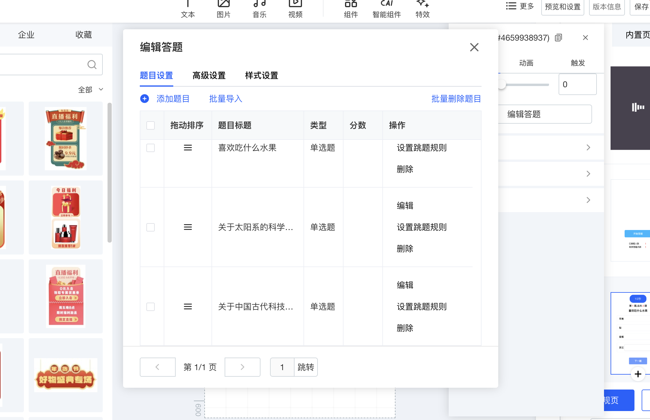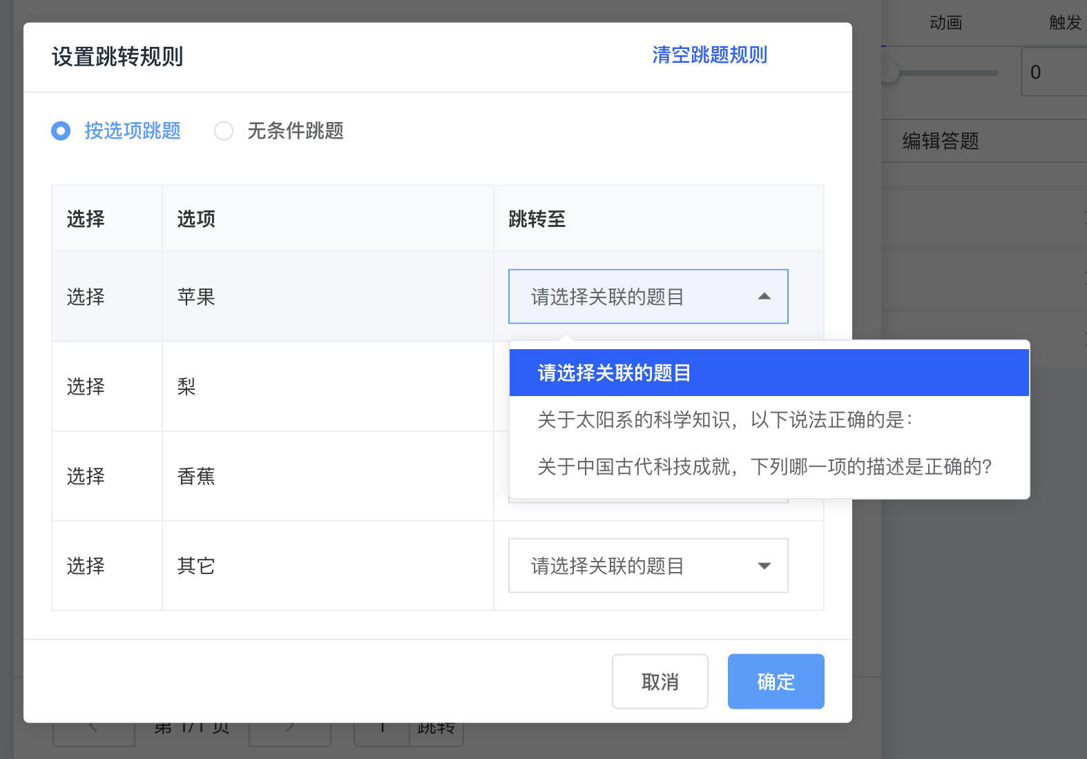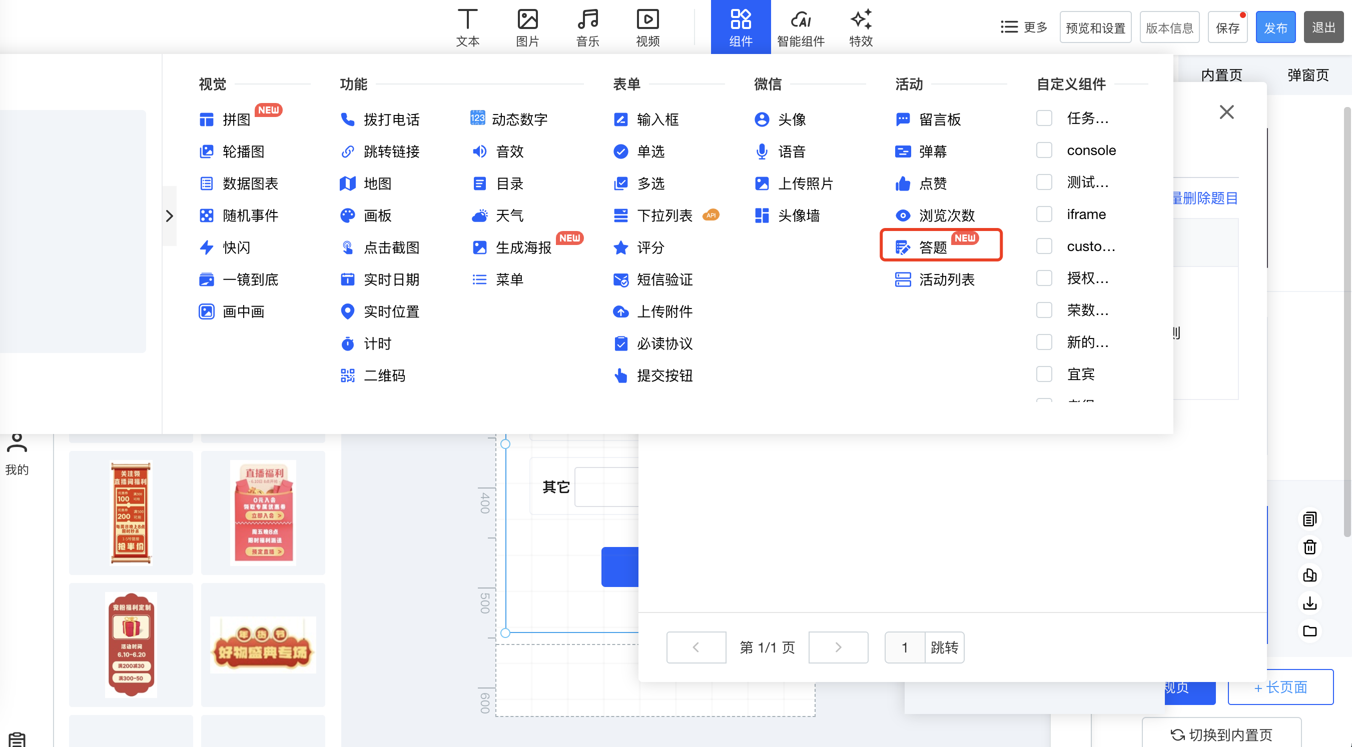 H5答题组件中新增了“其他”选项和跳题规则,满足更多应用场景和用户需求。