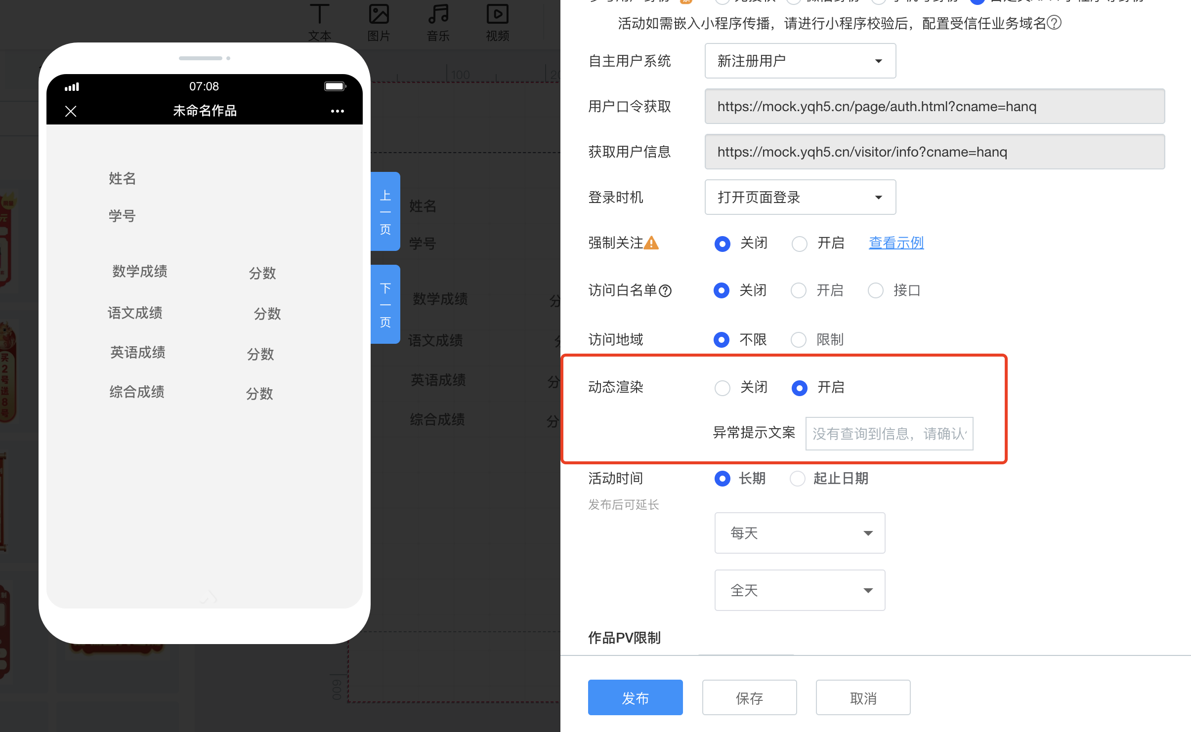 1、将数据集成优化成为H5的一项配置-“动态渲染”而非玩法,在“设置与预览”中开启“动态渲染”;
