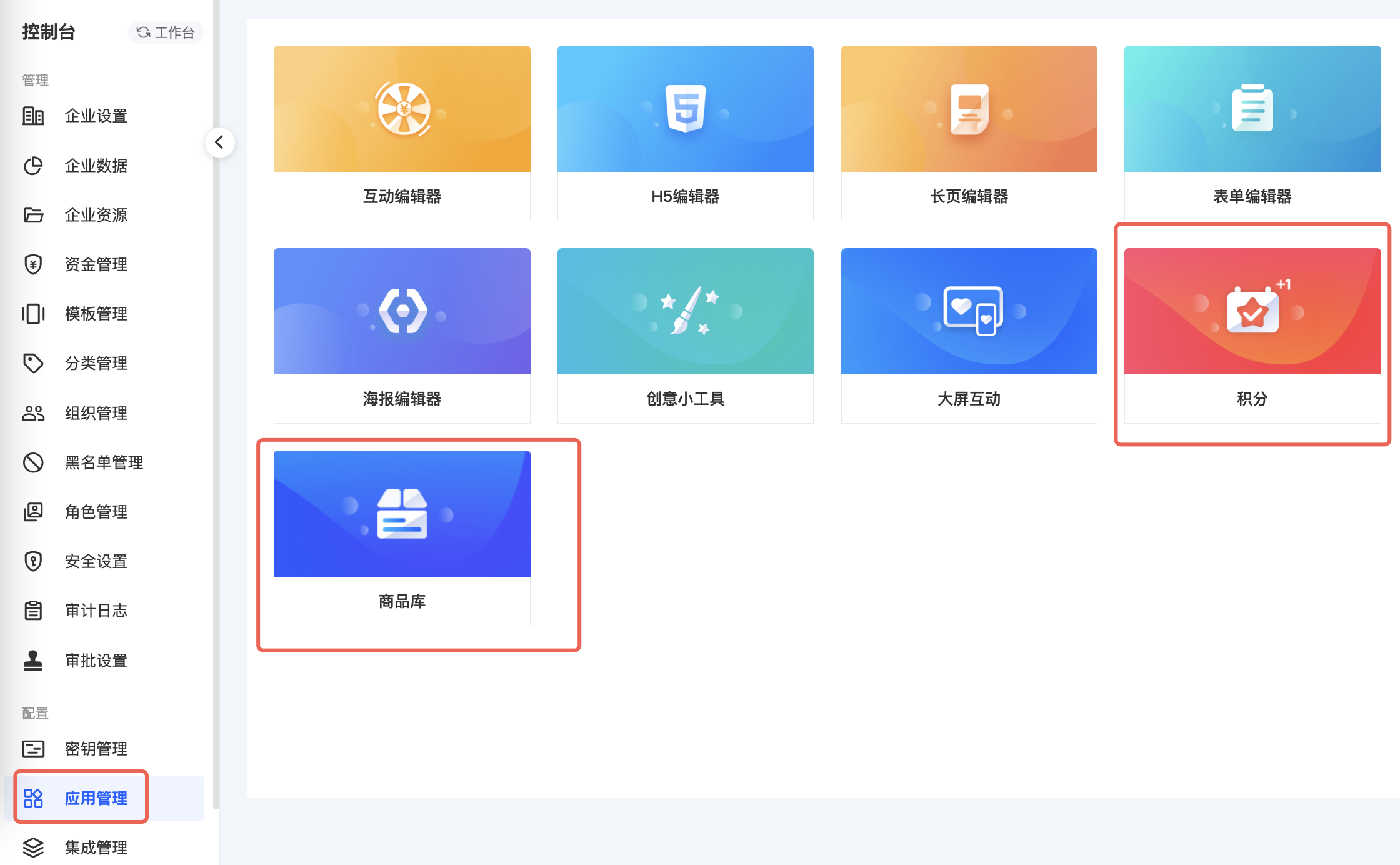 步骤①:控制台-应用管理-开通积分和商品库