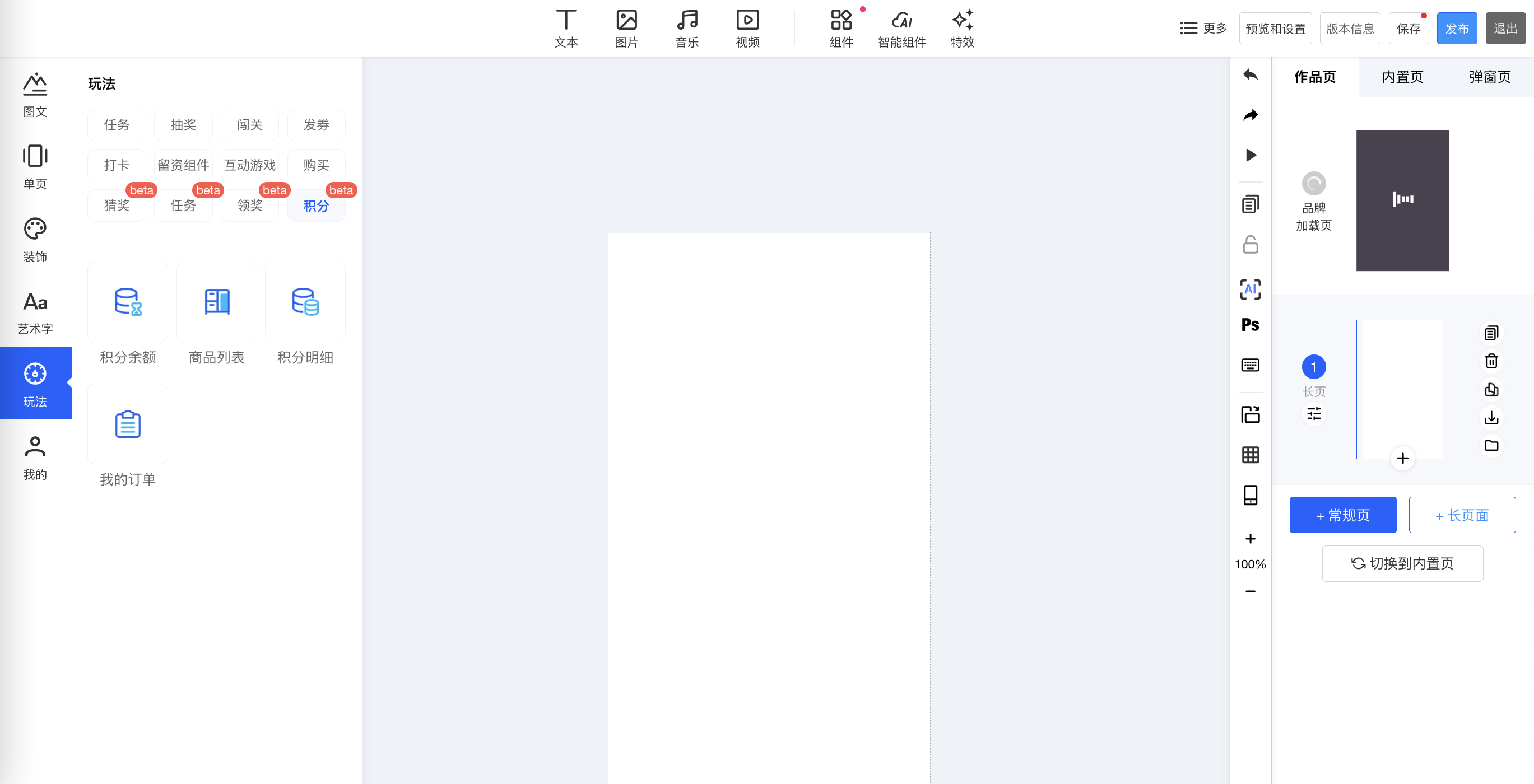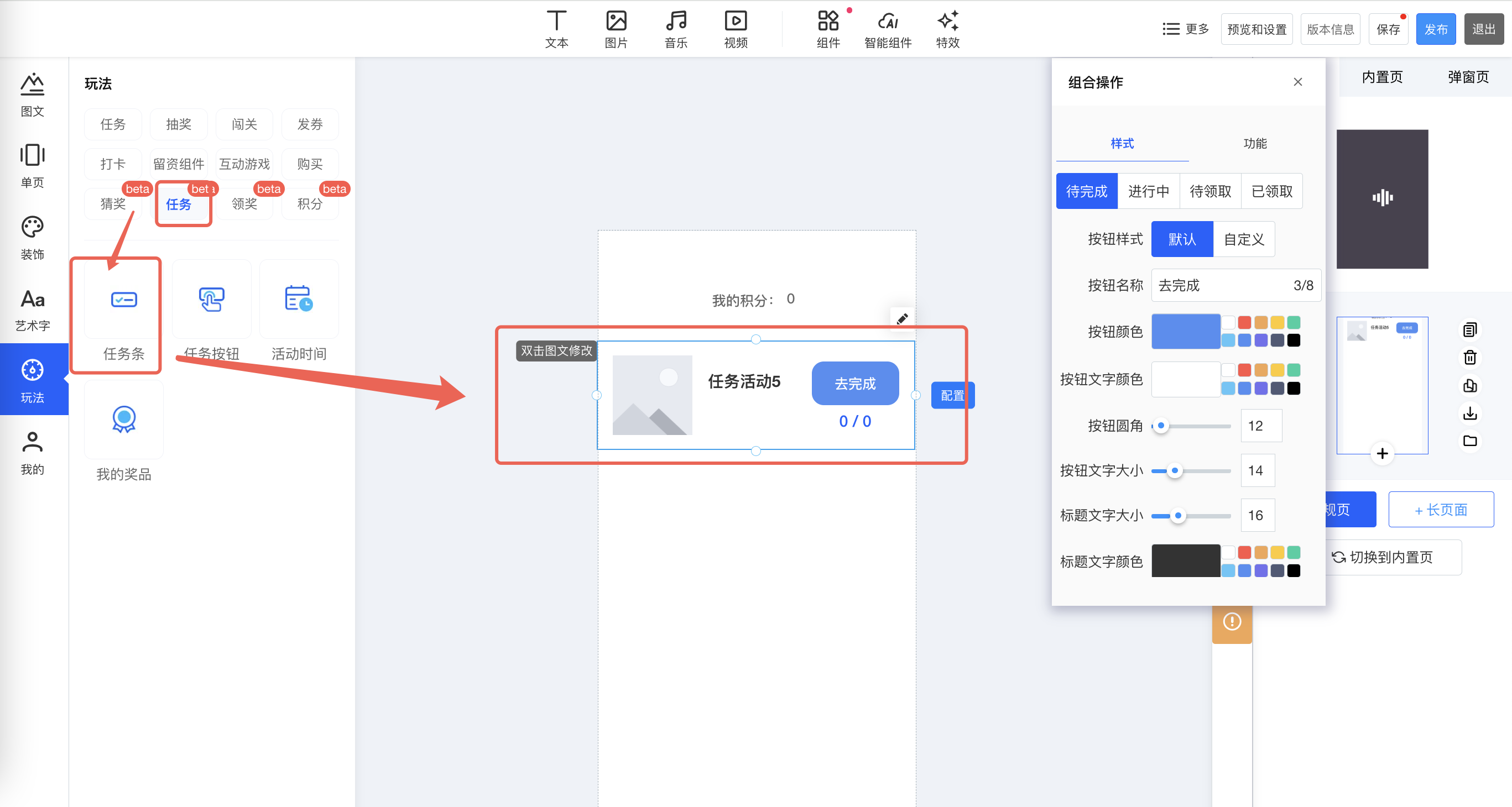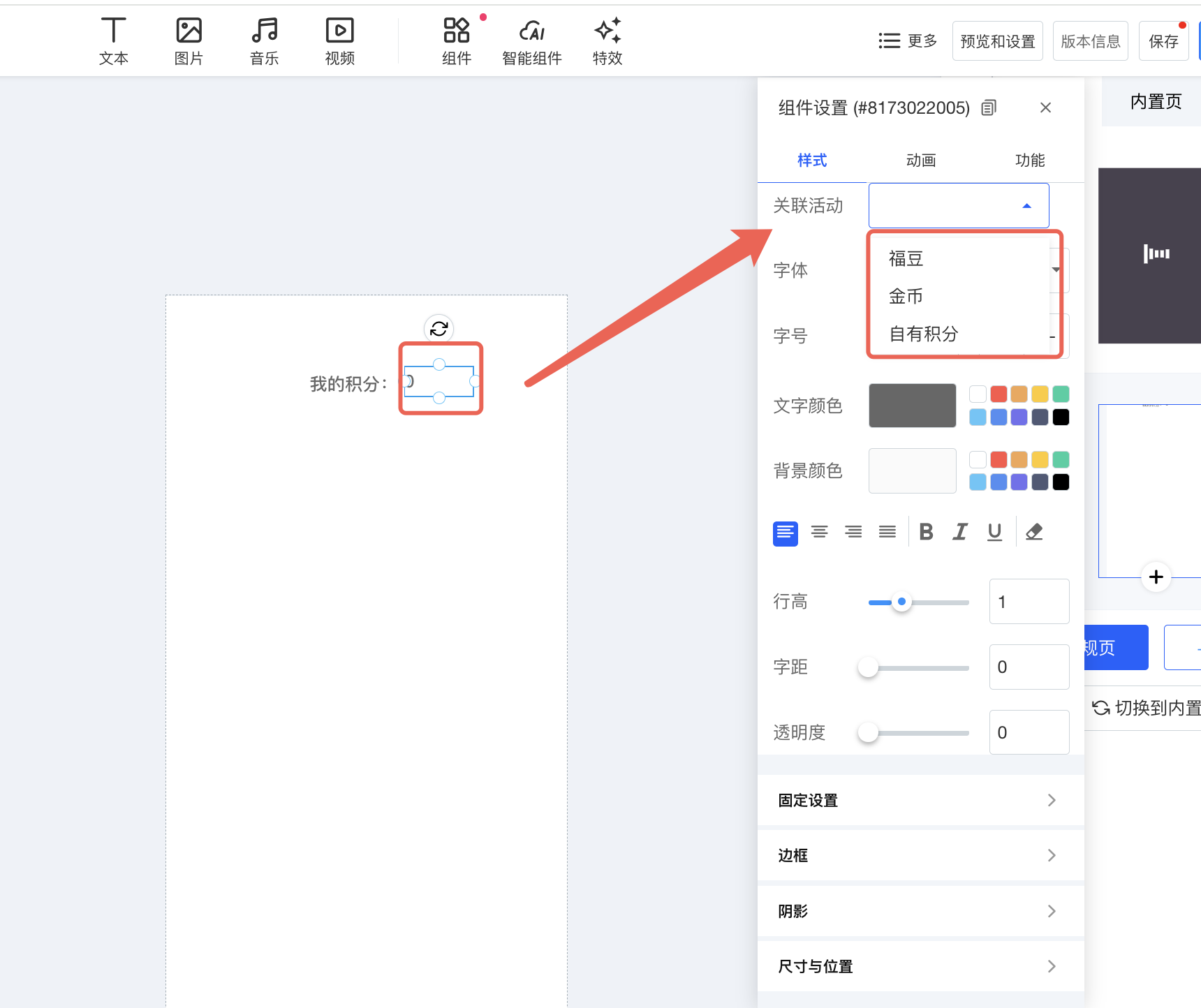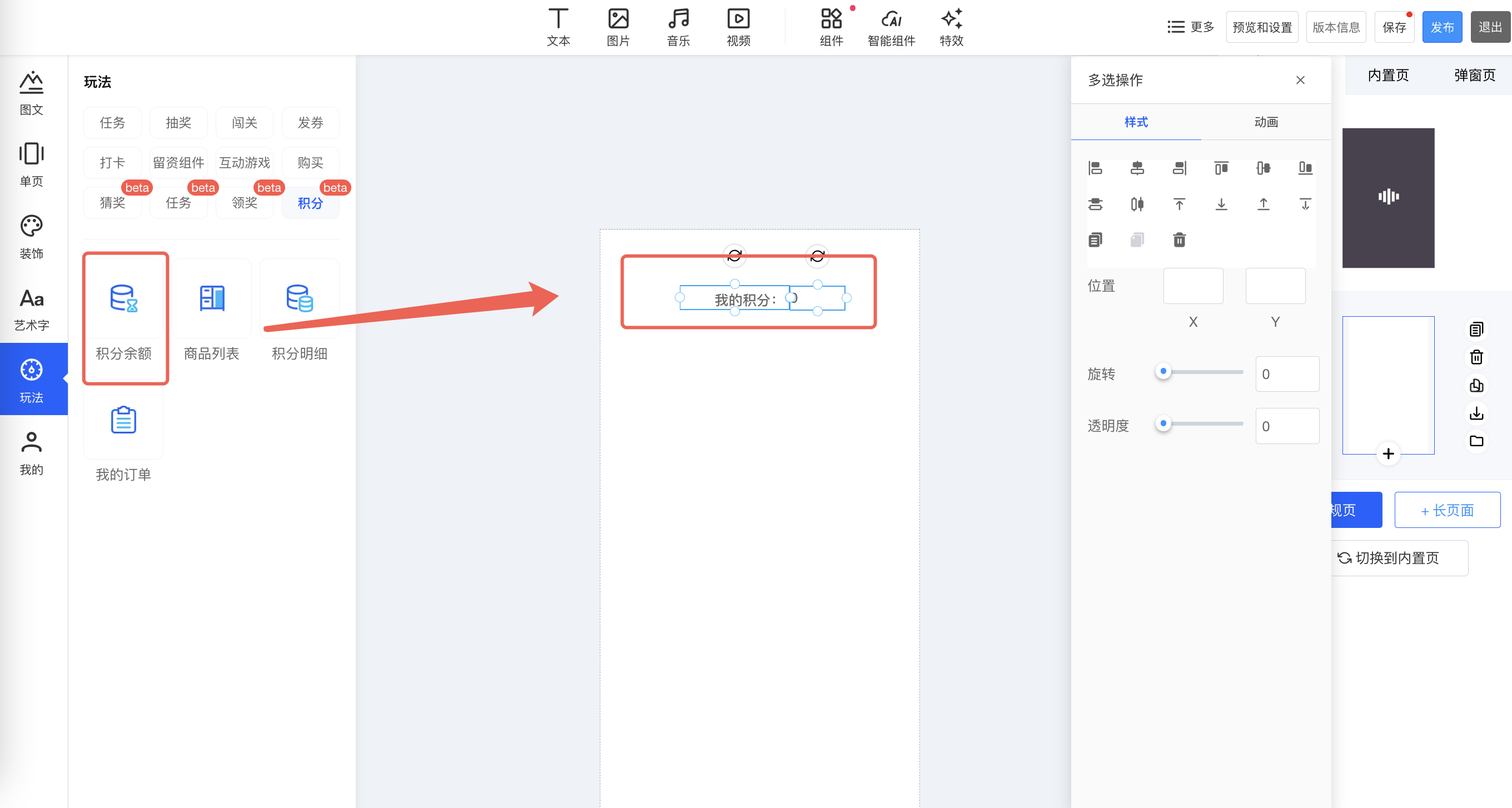 步骤③:H5编辑器添加积分组件